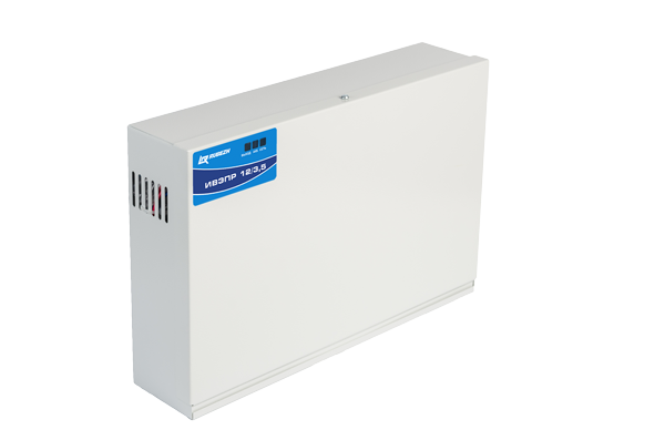 Источник питания ИВЭПР 12/3,5 имеет несколько исполнений корпусов для установки одной или двух АКБ ёмкостью от 7 Ач до 17 Ач. В зависимости от исполнения может быть предусмотрена техническая возможность подключения боксов резервного электропитания БР 12 (производства ГК «Рубеж») для увеличения времени непрерывной работы от АКБ. Источник сертифицирован на соответствие ГОСТ Р 53325.