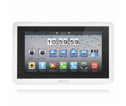 имеет цветной сенсорный экран 7 дюймов. Интерфейс в стиле IOS. Возможно подключение 2-х вызывных панелей и 4-х видеокамер. Дополнительным преимуществом является наличие голосовой почты (автоответчик), а так же наличие DVR. Запись фото/видео на SD карточку (до 32 GB). Функция записи по детектору движения. Функция фоторамки. Лёгкое подключение вызывных панелей. Приятный дизайн, удобный интерфейс. Адресный интерком, подключение до 4-х видеодомофонов в одну систему позволяет построить на базе домофона обширную сеть для контроля и разграничения доступа. Встроенный блок питания. Возможность подключения к подъездному координатному домофону (с помощью блока сопряжения).
