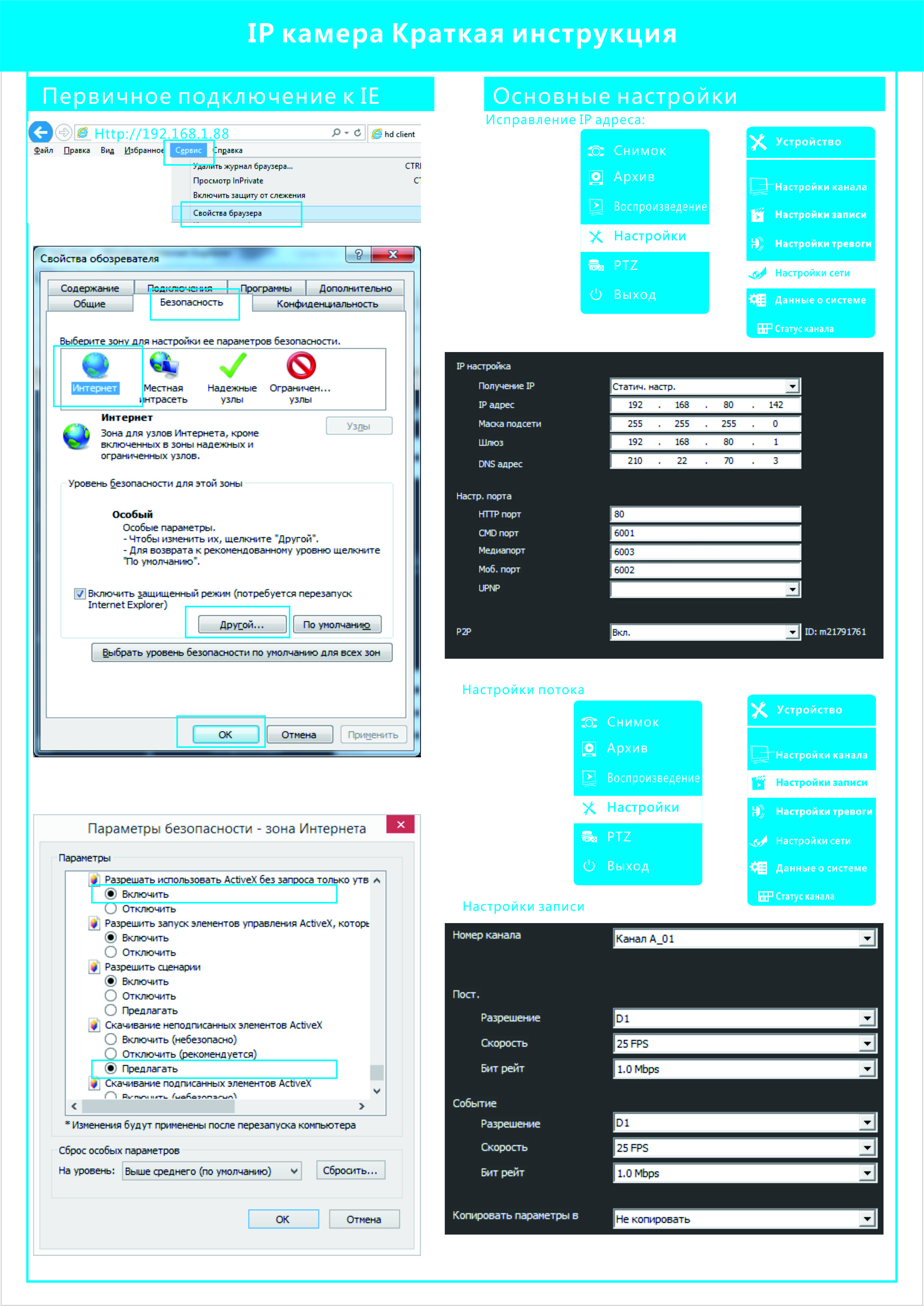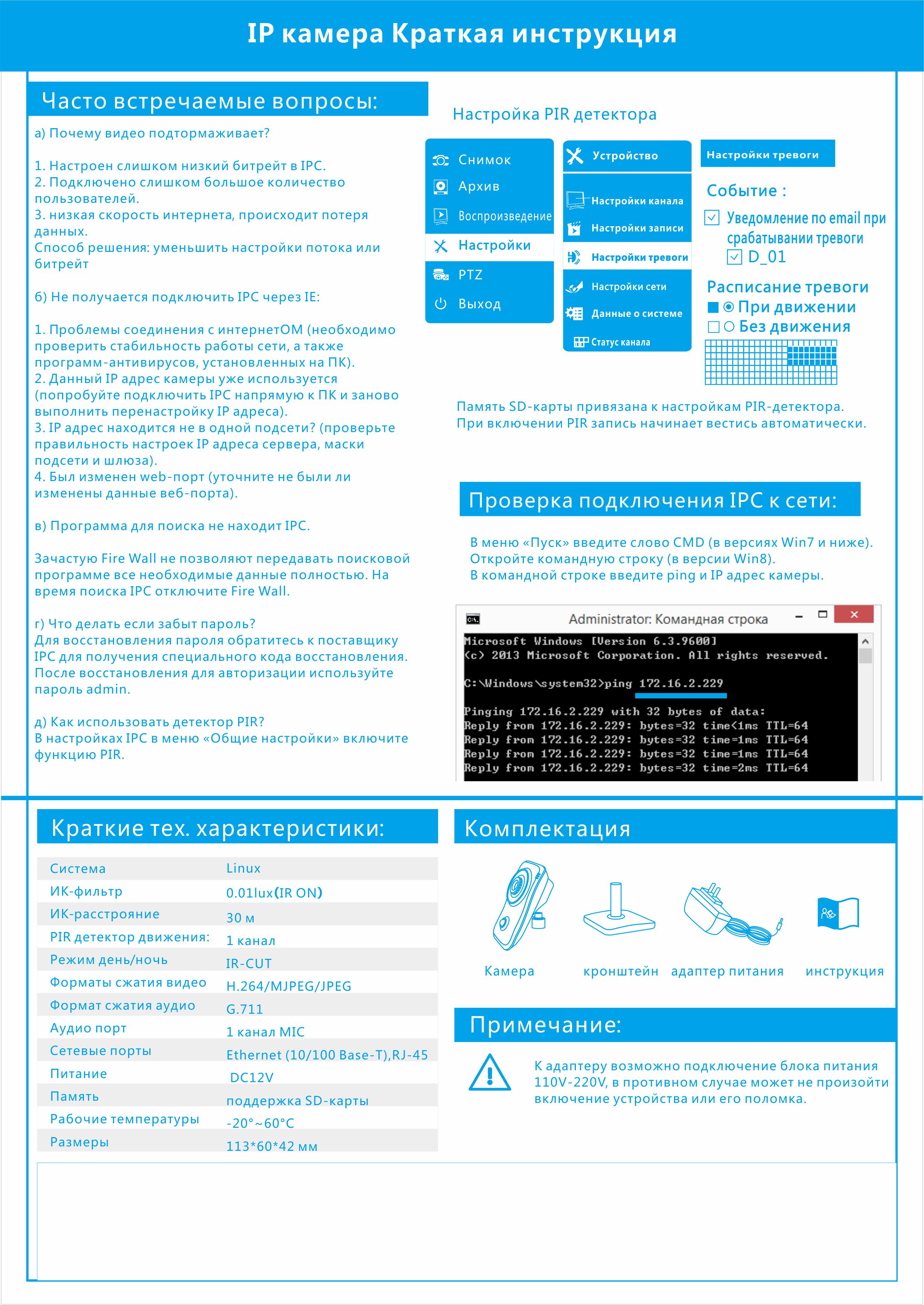 - разрешение(1280x 960P@25fps, 1280x720P@25fps);