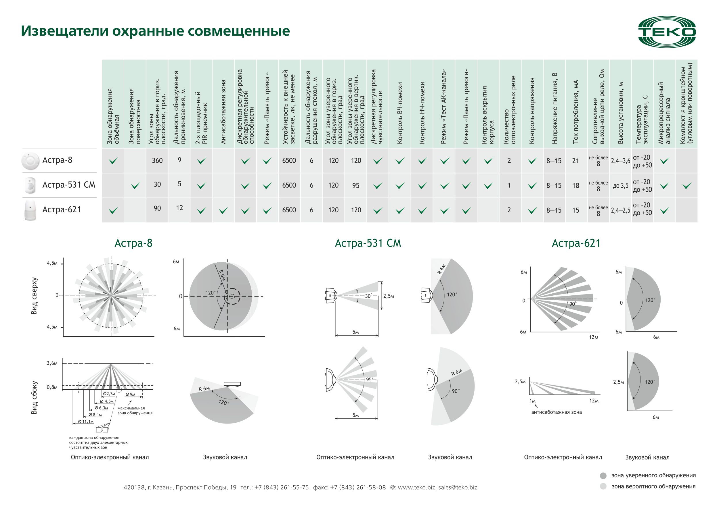 - 2 канала обнаружения: объемный оптико-электронный (ИК), поверхностный звуковой (АК);