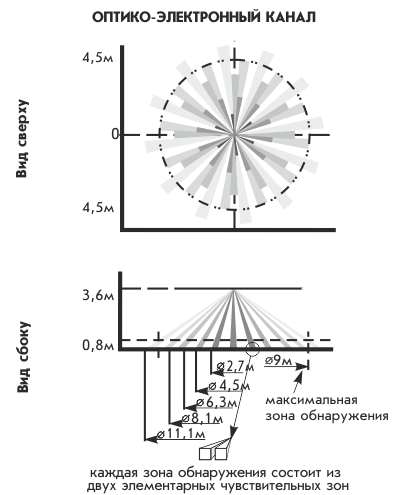 - объемная круговая зона обнаружения;