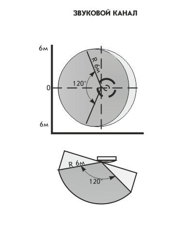 | дальность обнаружения в секторе объемного угла 120 ° из центра микрофона АК-канала |