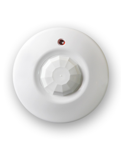 - Установка на потолке, объемная круговая зона обнаружения;