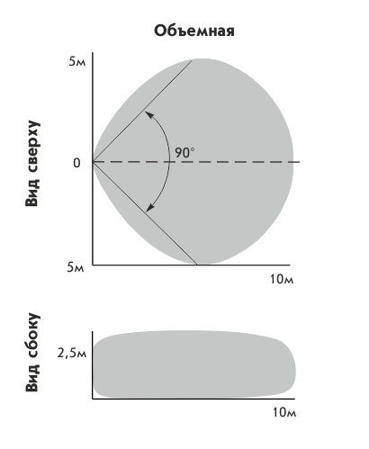 - Сплошная объемная зона обнаружения;