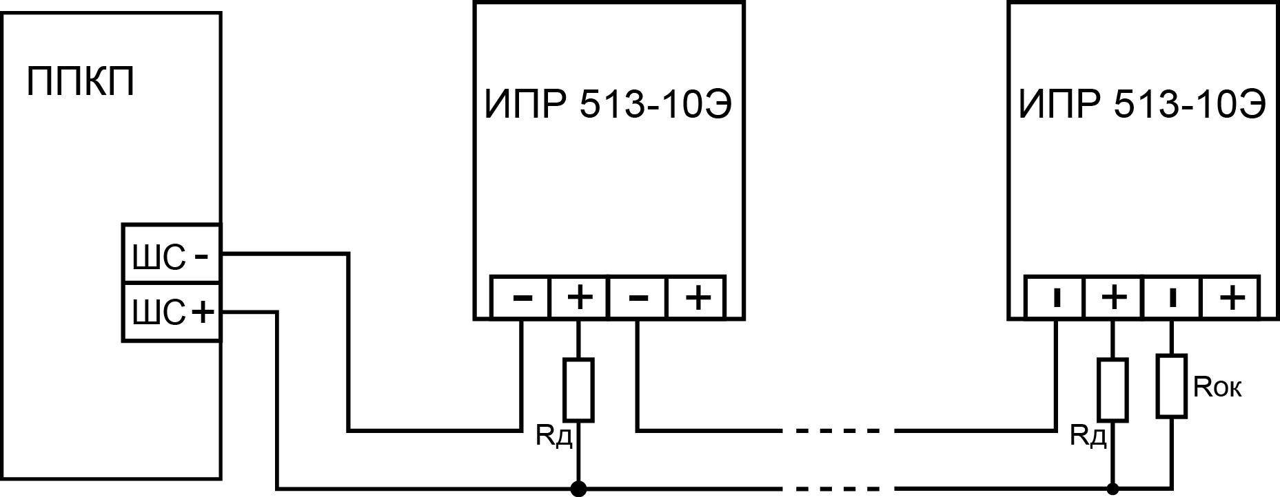 СХЕМА ПОДКЛЮЧЕНИЯ ИПР 513-10Э К ППКОП