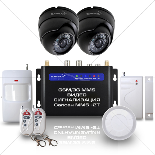 GSM сигнализация Sapsan GSM MMS 3G с датчиками, 2-мя комнатными в/камерами, функцией ВИДЕОЗВОНОК